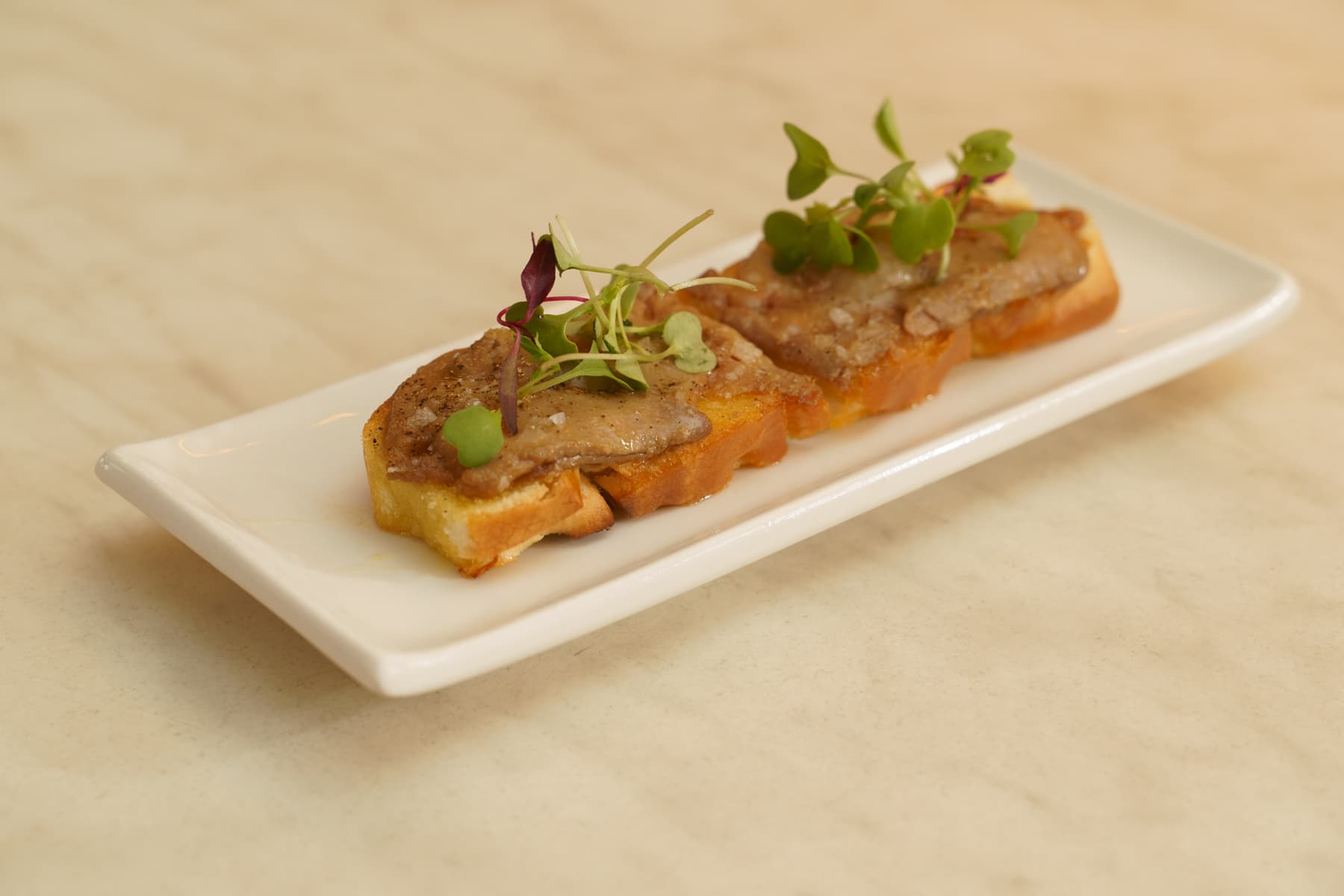 Montadito de Paleta ibérica serrana, tomate de la huerta rallado y a.o.v.e en pan de cristal tipo chapata.