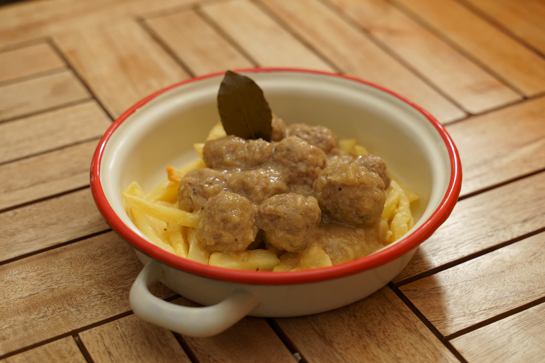 Albóndigas caseras con tomate estilo japo sobre parmentier de patata