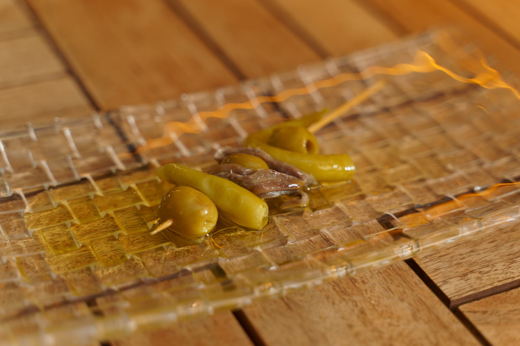 Gilda de aceitunas, piparras, boquerones del Cantábrico en vinagre y a.o.v.e.